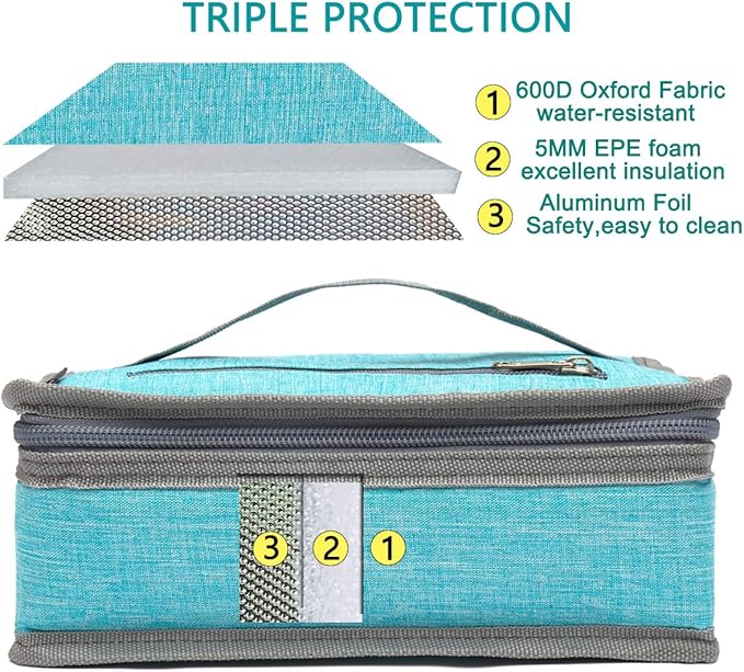 - ✿ Material:The FlowFly reusable Lunch Bag is made of the highly durable Polyester material,food grade aluminum foil inside, padded with extra thick 5mm PE foam and sturdy zippers.