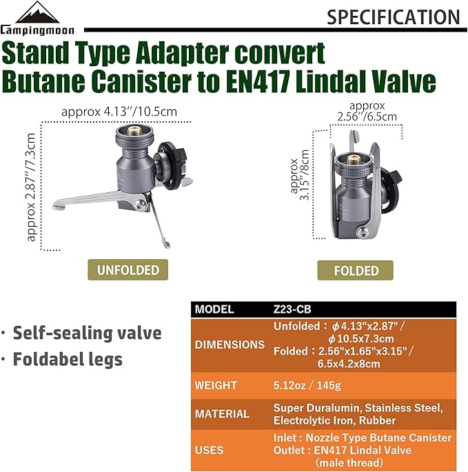 CAMPINGMOON Butane Gas Fuel Canister Adapter Stand Type Convertor for EN417 Lindal Valve Camping Gas Stove Lantern Z23-CB