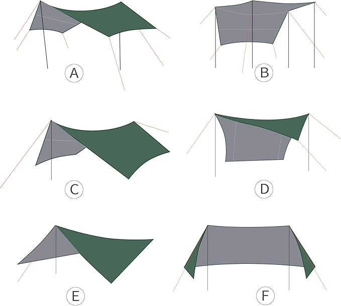 - Multifunctional: Our hammock tarp depends on the number of people and location, it can be used as a sleeping shelter when weather gets rough. it is suitable for beach play, outdoor camping, park leisure and family courtyard.Come with 6 stakes and 6 ropes, you can set up different shapes easily