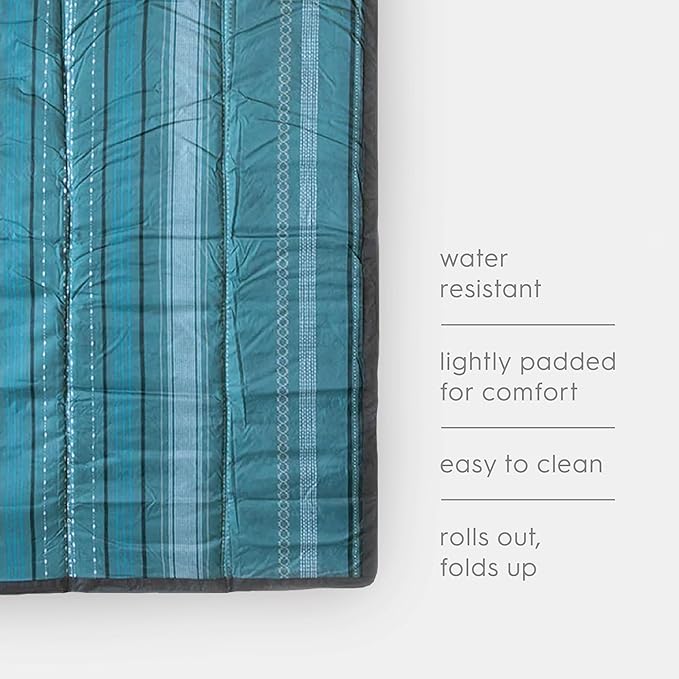Little Unicorn 5'x5' Outdoor Family Picnic & Beach Blanket | Durable & Water-Resistant Fabric | Compact Fold & Easily Wipes Clean | Zipper Pocket (Shoreline Stripe)