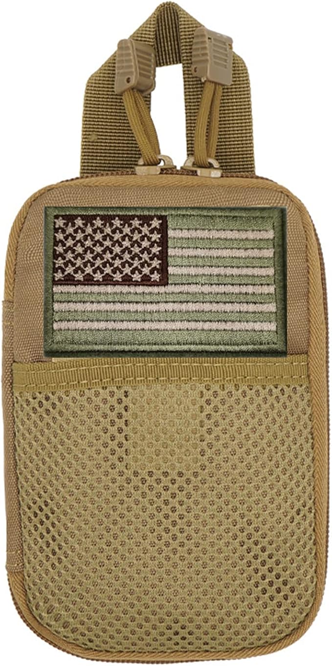 edc pouch multifunctional tactical bag molle bag accessory bag mobile phone bag, tactical belt pouch, men's belt bag, outdoor sports travel hiking waterproof bag with American flag embroidery patch
