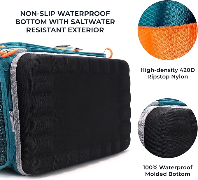 - WATER RESISTANT PACK - The fishing dry bag is made with industry-leading 420D ripstop nylon for exceptional performance. The molded, waterproof bottom repels water and will keep your fishing gear protected no matter the terrain
