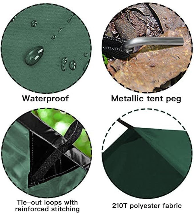 - 【WATERPROOF & UV PROTECTION】KALINCO waterproof camping tarp tent is made of 210T polyester with PU 3000mm waterproof coating, and has a taped central seam, quick-drying fabric ideal for rain flies. Our camping tarp coated with PU Inner layer, provide a UV protection in the sun