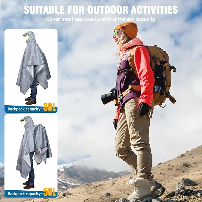 - Breathable & Comfortable: Don't worry that it will make you very hot because the arm holes & bottom are loose enough to allow air circulation.The size is large enough to cover up a backpack as well. It can help keep your backpack dry and prevent water from seeping through and damaging your items. It offers excellent freedom of movement, which makes it very comfortable to wear. Adjusting the snap fasteners on each side it can accommodate a range of body sizes and shapes.