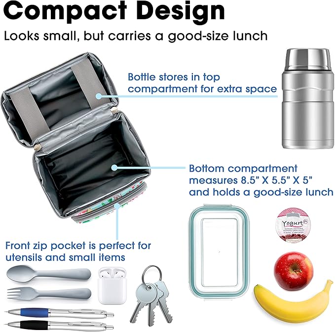 - Versatile – Works well as a lunch box for girls 10-12, a women’s lunch bag for work, or as a insulated lunch bag for kids age 8 years and up