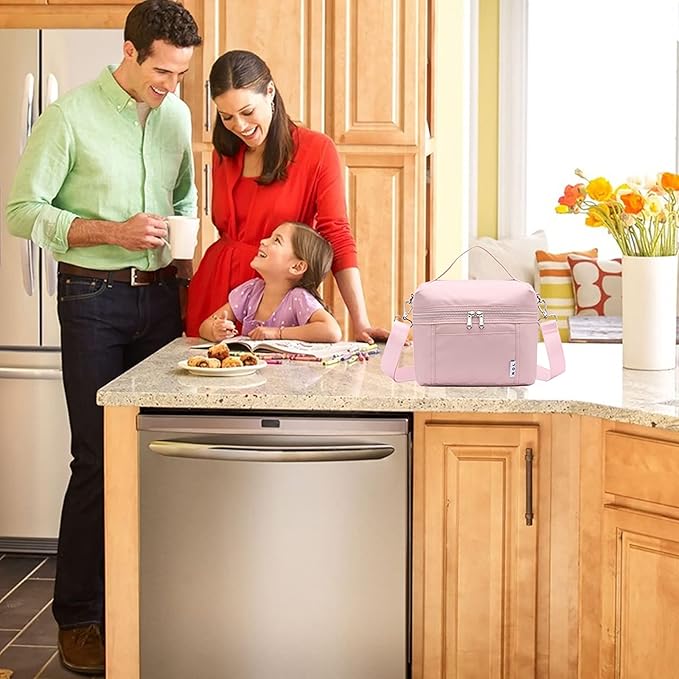 - Portable and cute design: this lunch bag is made of waterproof nylon outside, it’s lightweight and tear resistant; With two ways of carrying- top handle and cross-body by a detachable and adjustable long shoulder strap.