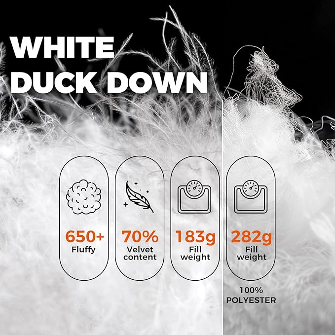 - EXCEPTIONAL WARMTH WITH DOWN INSULATION-Stay Cozy in Any Weather: Filled with premium white duck down, this sleeping bag offers superior warmth and insulation while remaining incredibly lightweight. Down insulation provides unparalleled heat retention, making it perfect for cold weather camping. Unlike synthetic materials, down stays fluffy and warm even in damp conditions, ensuring you stay comfortable for longer trips. Experience the luxury of warmth without the bulk!