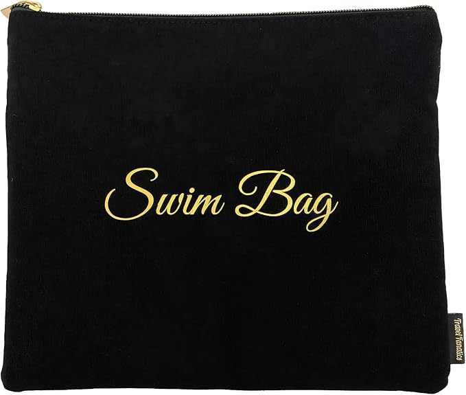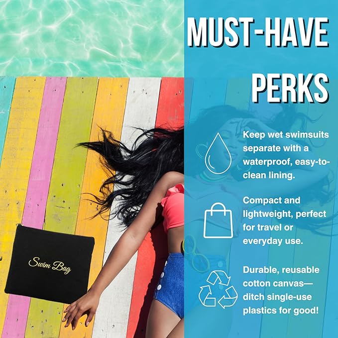 Travel Fanatics Swim Bag - Reusable Dry Wet Bag with Waterproof Lining, 11"x9.25" Beach & Pool Pouch, Wet Dry Bag for Gym, Swimwear, Travel Essentials, Durable Canvas Design - Black