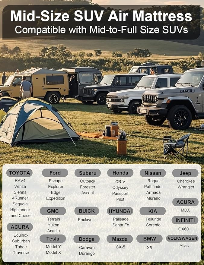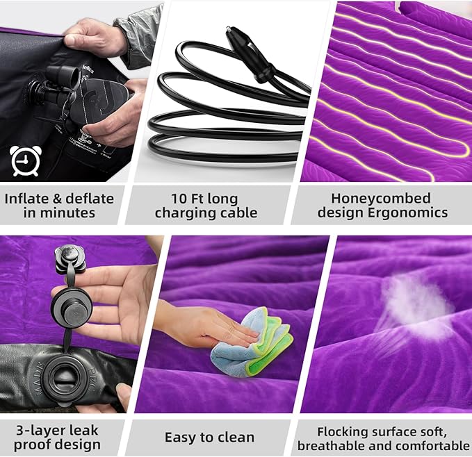 - Comfort & Durability: The Umbrauto inflatable SUV air mattress features a soft flocked top surface for a plush feel, a durable PVC body for strong support, and extra thick 210T grid fabric on the bottom to prevent punctures and air leakage. This combination ensures long-lasting comfort and reliability.