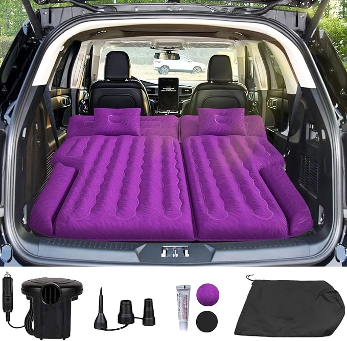 Umbrauto SUV Camping Air Mattress Bed for Mid-to-Full Size SUVs, Inflatable Car Sleeping Airbed for Fold-Down Backseat Back Trunk, with Air Pump, Pillows and Carry Bag