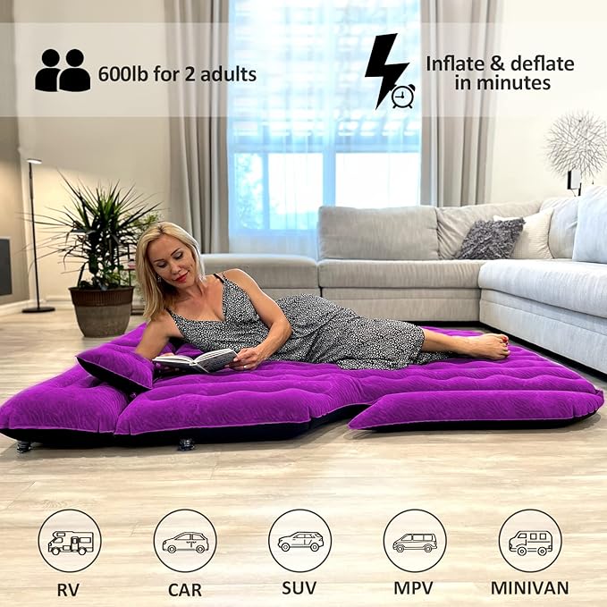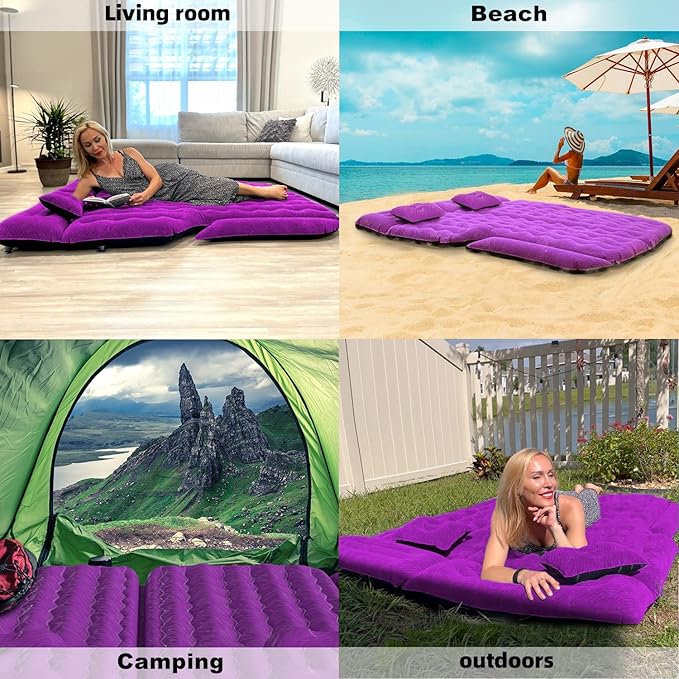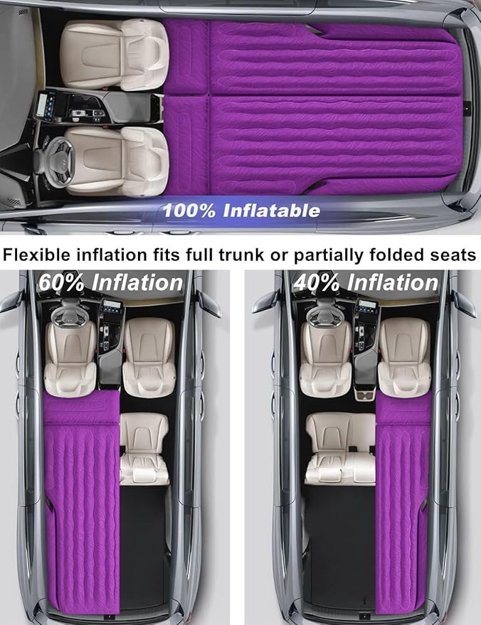 - Versatile & Convenient Design: Featuring a 6-chamber construction, this air mattress allows 40%, 60%, or full inflation to fit fully folded trunks or partially folded backseats. Perfect for camping, travel, and beach outings, it adapts effortlessly to various needs.