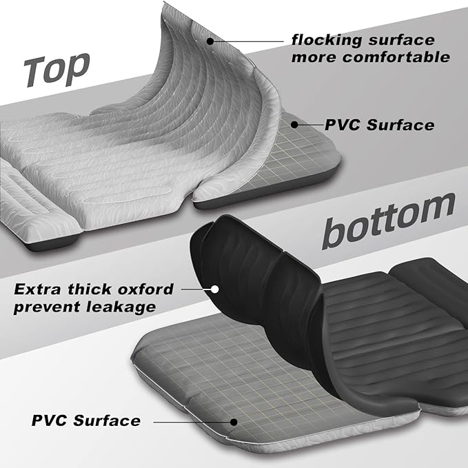 - Comfort & Durability: The Umbrauto inflatable SUV air mattress features a soft flocked top surface for a plush feel, a durable PVC body for strong support, and extra thick 210T grid fabric on the bottom to prevent punctures and air leakage. This combination ensures long-lasting comfort and reliability.