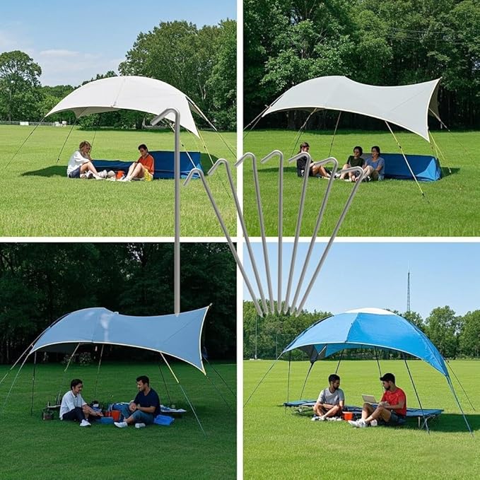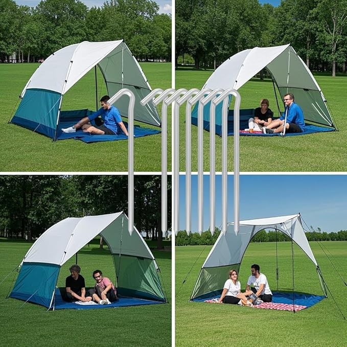 - 【GOOD TENT PEGS FOR YOUR USE】Comes in a package of 8 galvanized steel tent pegs, multipurpose steel pegs are ideal for anchoring yard outdoor camping, tents, canopy, fencing, garden/ landscap edging, shelters, tarps, little dogs, garden netting, gazebo anchors and other garden structures.Holding down any tent,just prod the peg with a hammer to drive it into the beach and keep your tent from being blown away when you are camping.
