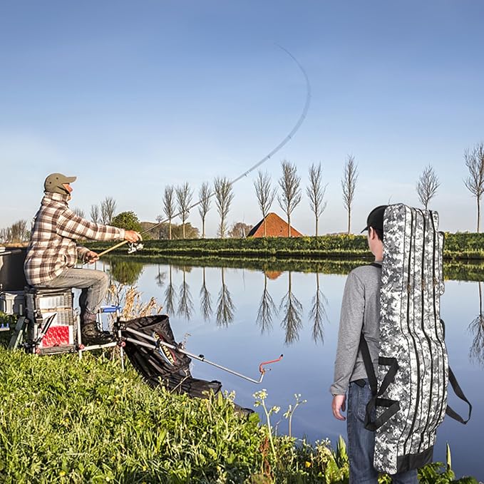 - 【Unique Design】 Designed with clear printing and camouflage appearance, fishing rod reel case has delicate and smooth sewing with fine craft, which exceedingly adds a sense of fashion and beauty, perfect gift for family, father, boyfriend, daughter and friends.