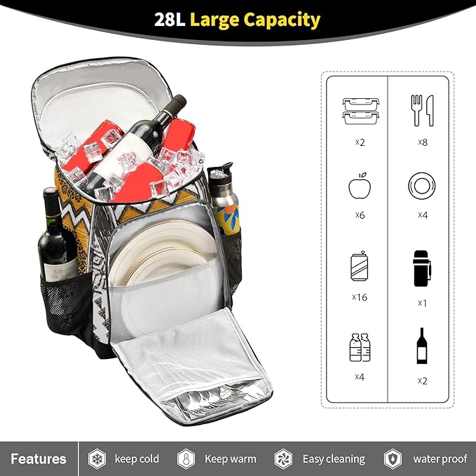 - ✔ Large Capacity Coolers Backpack: 30 Cans/30L, 16.9" x 13" x 7.9", Weight: 1.3 LB. Maximum capacity 36 cans (330ml), Roomy enough to store food, beers, tall beverages, snacks, and other necessities. Perfect picnic backpack for outdoor activities.