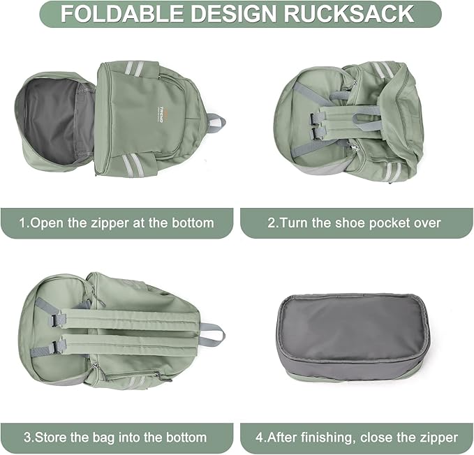 - ★FOLDABLE DESIGN FOR EASY STORAGE★: When not in use, this backpack can be folded into small items for easy storage and takes up very little space. How to do it: Open the bottom zipper, turn the independent shoe bag upside down, put the backpack upside down, and zip it up after you’re done.