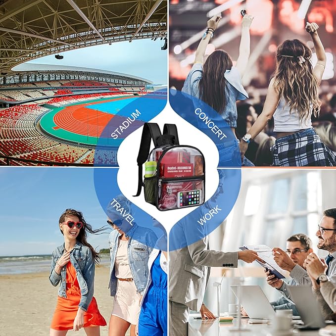 USPECLARE Clear Backpack for Stadium Approved 12×6×12, Water proof Clear Bag for Stadium Events and Concert Work Sport Event