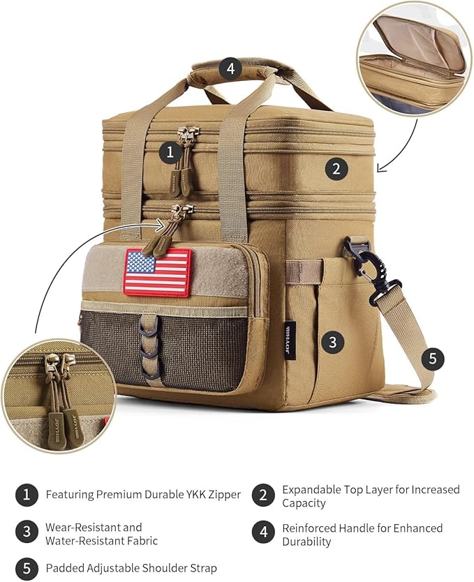 JOYHILL 18 L Tactical Lunch Box - Insulated, Leakproof, and Expandable Double-Deck Cooler Bag for Work, Camping, Picnic - Durable Black Lunch Bag for Adults, 24 Can