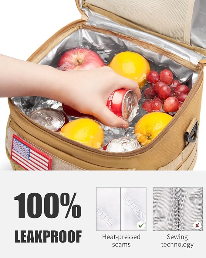 - Tactical & Practical Design: This insulated cooler bag combines outdoor ruggedness with tactical versatility. Includes an adjustable strap for easy carry and a front pocket for personalization. This lunch box cooler can be messenger bag or a handbag