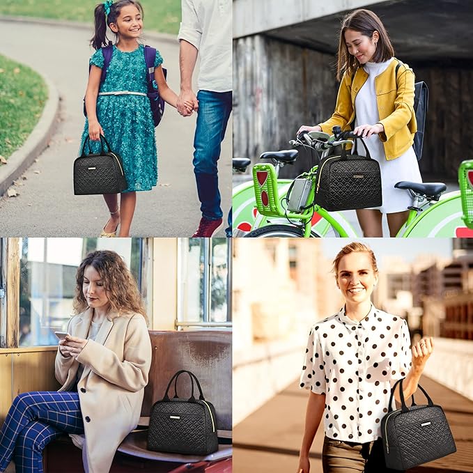LOKASS Lunch Bag Women Insulated Lunch Box Thermal Lunch Tote Bags for Adults Work(Black-Embroidery)