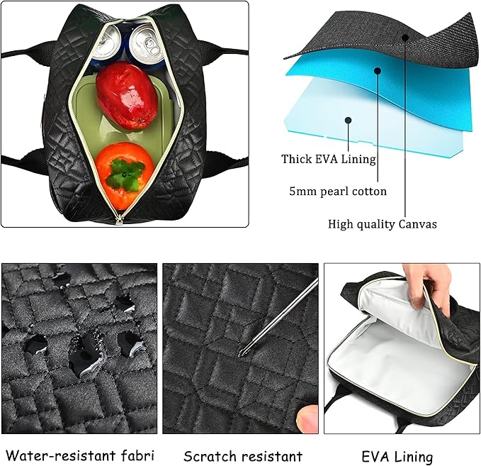 - Materials - Made of high quality nylon. Thick EVA lining that is easy to clean can keep food warm and fresh for 6 hours. 5mm pearl cotton padding provides better protection and insulation.