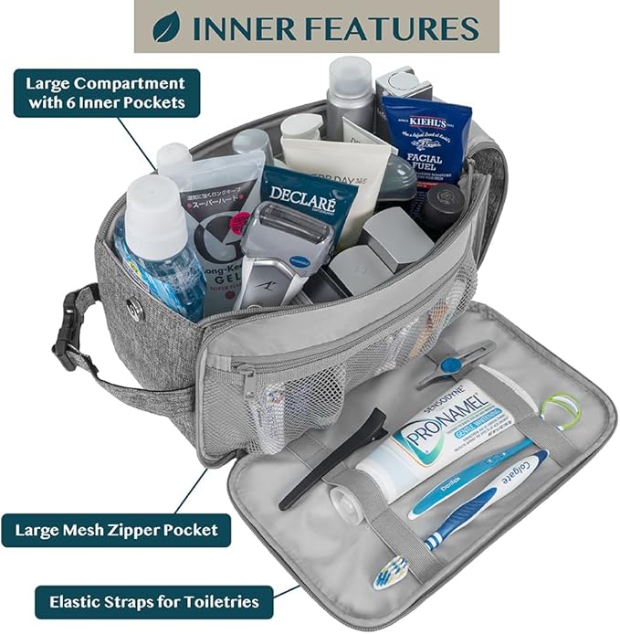 - LARGE OPENING TOILETRIES TRAVEL BAG: This toiletry bag organizer has double zipper design that allows for easy access to the large main compartment. With one simple pull on the handle, you can easily access key accessories such as shaving kit, tooth brush, and shampoo. This toiletry travel bag has the convenient design that helps you stay organized and makes this travel bag case an essentials during any traveling, flights, hotel stay, and weekend vacation.
