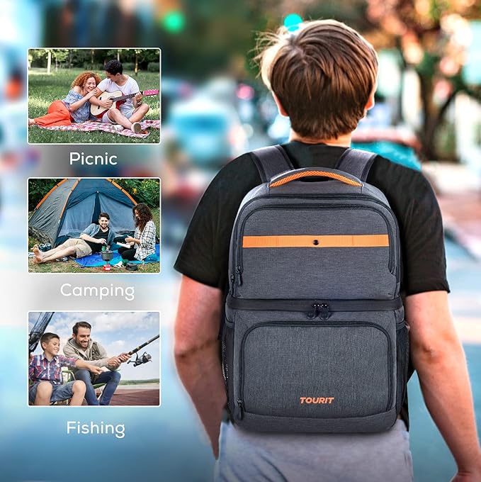 TOURIT Backpack Cooler with Double Decks, Insulated Cooling Bag for Lunch, Waterproof Lightweight for Men to Camping, Picnic, Hiking, Beach Park