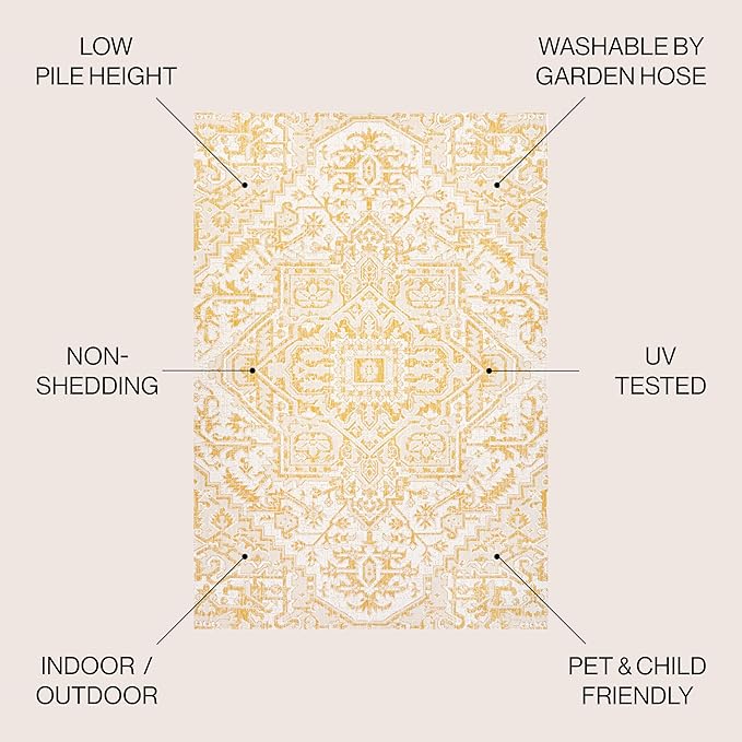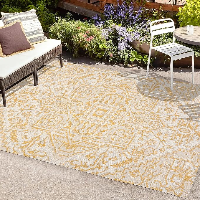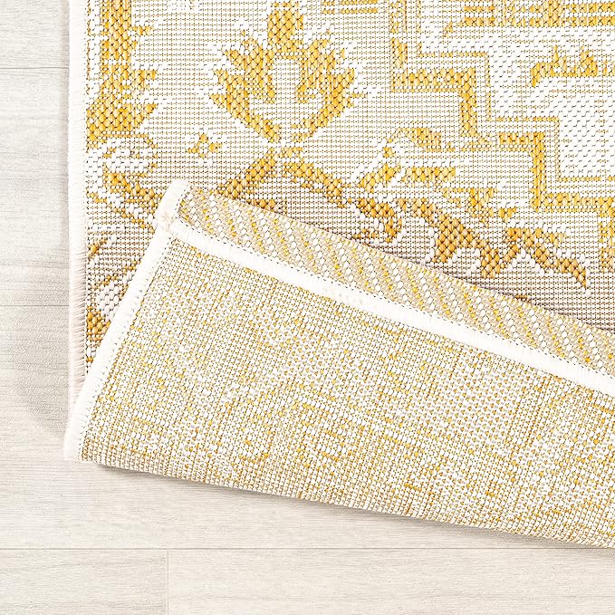 JONATHAN Y SMB105H-8 Estrella Bohemian Medallion Textured Weave Indoor Outdoor Area-Rug, Coastal Traditional Easy-Cleaning,Bedroom,Kitchen,Backyard,Patio,Non Shedding, 8 X 10, Cream/Yellow
