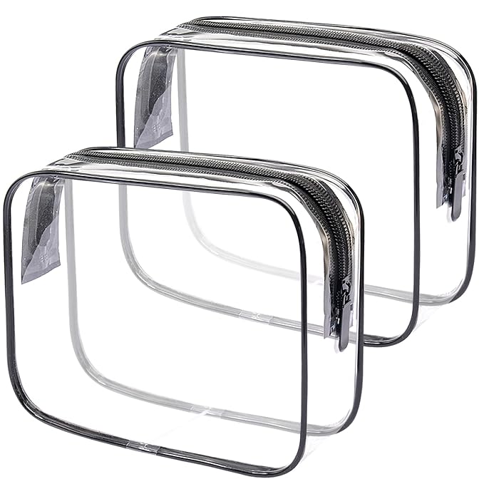 Lermende 2pcs Clear Toiletry Bag TSA Approved Travel Bag,Carry On for Travel,Airport Airline Accessories Compliant Bag,Quart Sized Makeup Cosmetic bag Women Men (Transparent Black, 2 Pack)