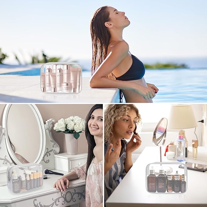 - ✈Waterproof Secure Clear Toiletry Bag for Traveling- Airline toiletries bags are transparent and waterproof to hold all your items including Liquids, at least resistant to leaks in case one of your bottles spills. Enjoy your trip without worrying, and no longer to worry about travel toiletry bag splitting easily and cosmetics spread anywhere!