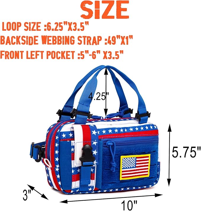 - FRONT LASER-CUT LOOP : Tactical admin pouch utilized the stackable laser cut front loop material Molle platform for storing additional tools, mounting memorable patches, adding customization/tactical ID, attaching additional MOLLE gear. Adding our free flag patch will makes it more conspicuous and fashionable.