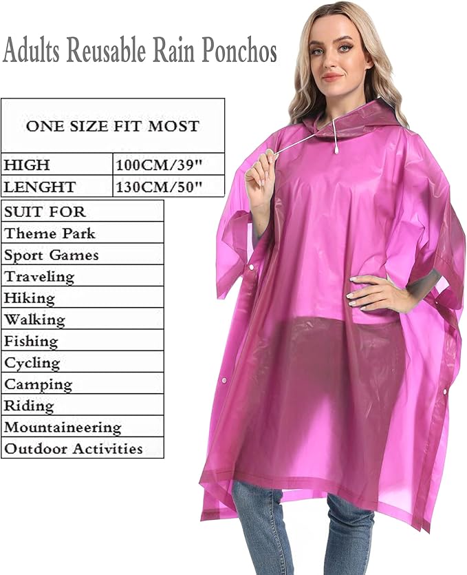 - ☔ 【ENJOY YOUR ADVENTURES WITHOUT WORRYING THAT THE RAIN WILL START】 - Our rain ponchos are great when you pack light and you don’t want to carry around your umbrella or the heavy, space consuming raincoat. When going to Disneyland, a concert, hiking, fishing, stadium or any great outdoor activity that you love.Unisex waterproof ponchos, one size fits most, perfect for men, women, boys and girls.