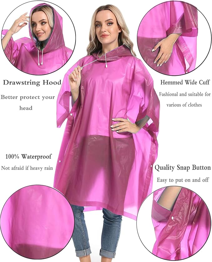 - ☔ 【HIGH QUALITY MATERIALS】 - Compare to other PE rain jacket, our travel raincoats are made of new eco-friendly EVA., which is non-toxic, no smell, durable, tear-proof, harmless, extremely waterproof and reusable.