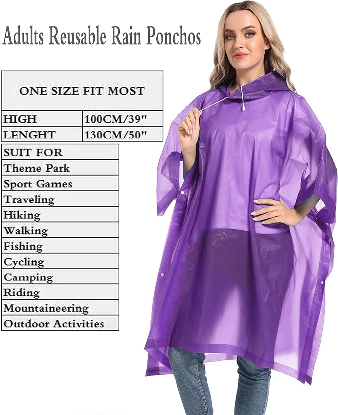 - ☔ 【ENJOY YOUR ADVENTURES WITHOUT WORRYING THAT THE RAIN WILL START】 - Our rain ponchos are great when you pack light and you don’t want to carry around your umbrella or the heavy, space consuming raincoat. When going to Disneyland, a concert, hiking, fishing, stadium or any great outdoor activity that you love.Unisex waterproof ponchos, one size fits most, perfect for men, women, boys and girls.