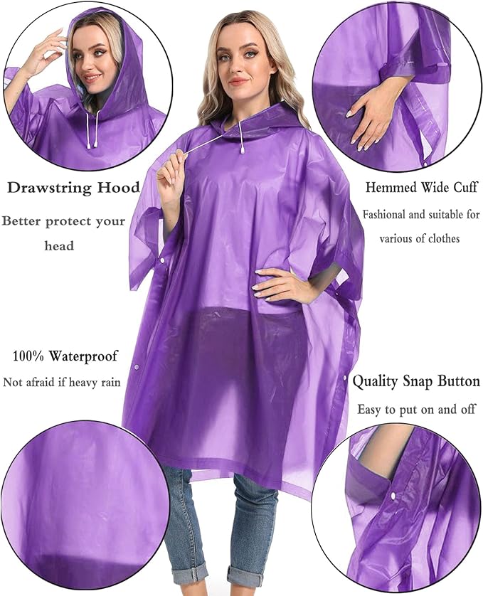 - ☔ 【HIGH QUALITY MATERIALS】 - Compare to other PE rain jacket, our travel raincoats are made of new eco-friendly EVA., which is non-toxic, no smell, durable, tear-proof, harmless, extremely waterproof and reusable.