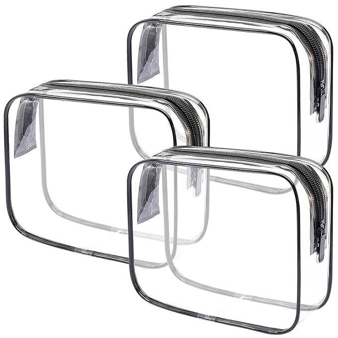 Lermende 2pcs Clear Toiletry Bag TSA Approved Travel Bag,Carry On for Travel,Airport Airline Accessories Compliant Bag,Quart Sized Makeup Cosmetic bag Women Men (Transparent Black, 3 Pack)
