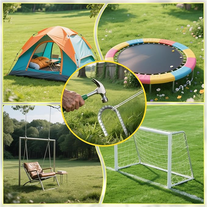 - Wide Application: Heavy duty yard stakes fence stakes for ground gardening. Tie down stakes for outdoor decorations. Can use stakes heavy duty to hold down the trampolines, swing sets, slides, dog fences, tent, ground anchor