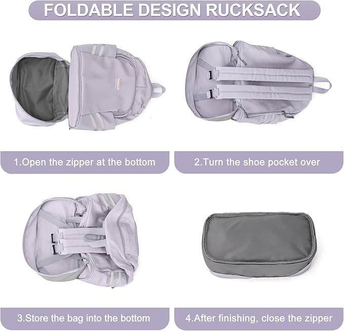 - ★MULTIFUNCTIONAL STORAGE SPACE★: About 20L of storage space. The main spacious compartment can hold 3-5 thin tops or pants, the 3 mesh insert pockets can be used to store iPad, wallets or power banks. The inner zip pocket can be used to store ID and credit cards. There are also two side pockets that can store water bottles and umbrellas.