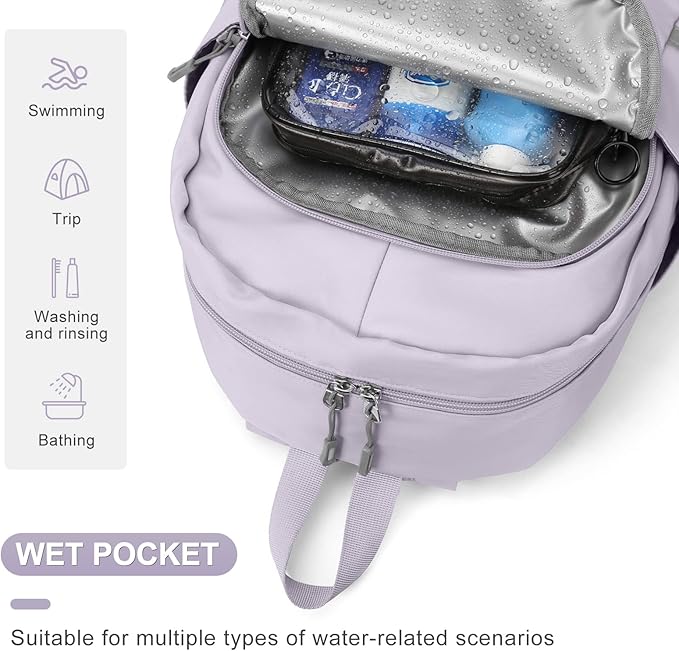 - ★WET POCKET★: The wet pocket can hold wet items, such as toiletries, towels, swimming suits, etc., which is convenient for you to use when you are on a business trip or shower after exercise, and avoids getting wet in other parts of the backpack.