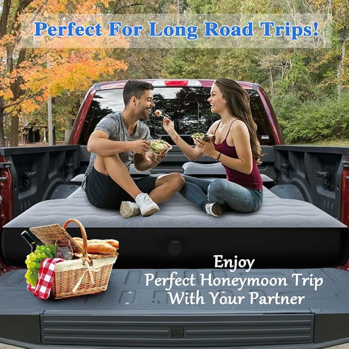 - 【Truck Air Mattress】Camping season is coming up, and this camping mattress is the perfect partner for a nap in nature. Whether indoor or outdoor, our camping air mattress is a good choice. Our portable pickup truck air mattress is very suitable for family car truck travel, long trips, and camping tent.