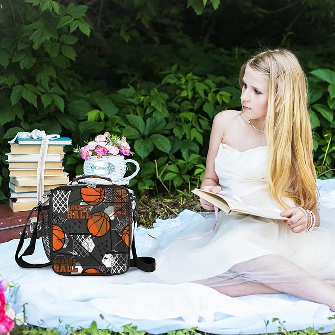 cfpolar Basketball Lunch Box for Boys Insulated Lunch Bags Reusable Mini Cooler Lunch Tote Mens Lunchbox Thermal Meal Tote Kit with Shoulder Strap for Work School Picnic