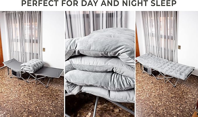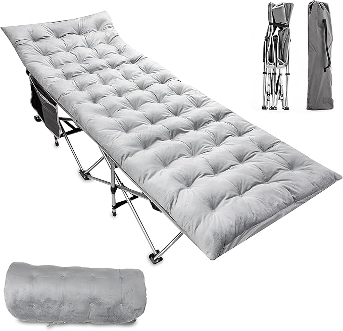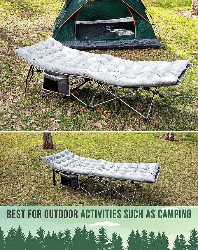 Zento Camping Cot and Mattress Folding Outdoor Travel Bed - Heavy Duty Max Load 450 LBS Premium Quality Cot Bed with Pad for Comfort Sleeping for Travel Home and Anytime Use