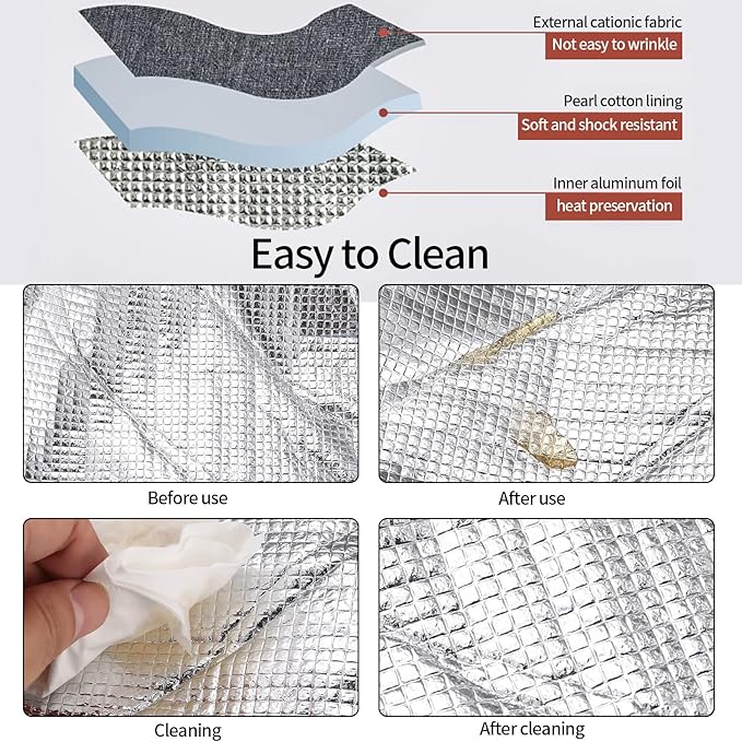 - Premium Material: External cationic fabric, not easy to wrinkle, pearl cotton lining, soft and shock-resistant, inner aluminum foil, heat preservation. High-quality materials make our lunch bags tear-resistant, abrasion-resistant, leak-proof, easy to clean and durable.