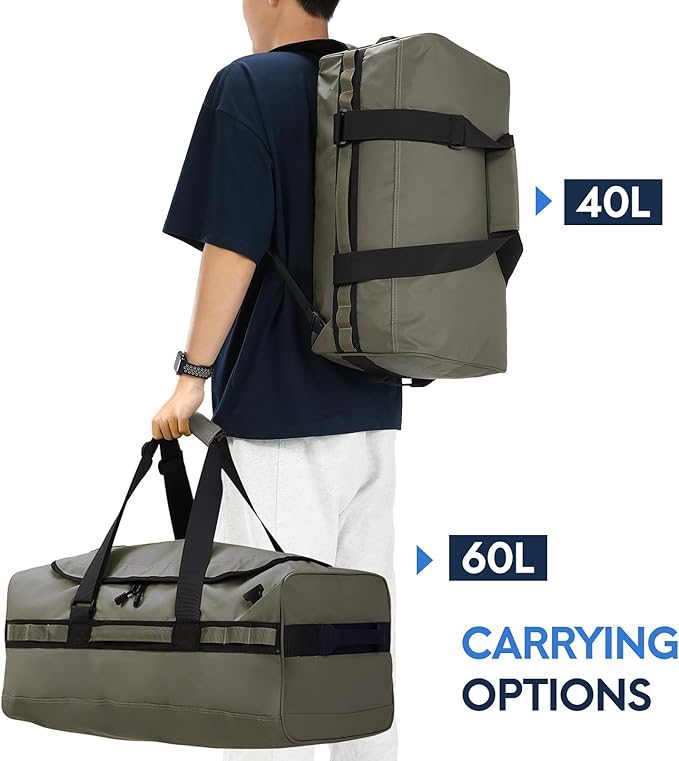 Haimont Water Resistant Backpack Duffle Heavy Duty Convertible Duffle Bag with Backpack Straps for Gym, Sports, Travel, Army Green, 60L