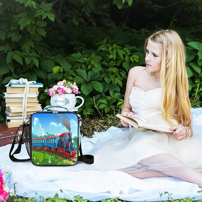 - đťăMore Featuresă--Fashionable, lightweight, padded handle, upgraded durable smooth zipper, easy to clean, waterproof, insulated, cooler, convenient. This train lunch bag can be used as a lunch box, picnic bag, sundry bag, meal prep bag with personalized fun patterns that children, girls and boys all like.