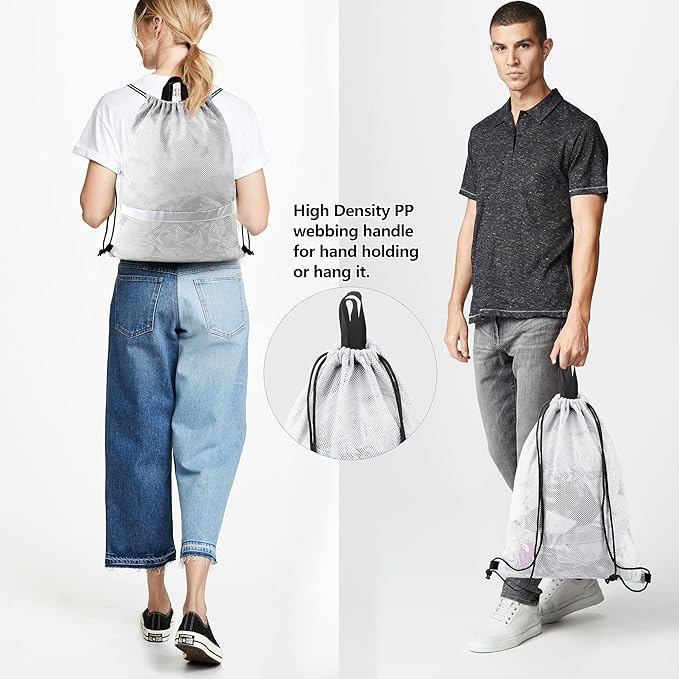 - Machine Washable & Two PP Webbing Handles & Collapsible: Large mesh drawstring backpack is machine washable and can dry quickly. Then our sports bag will come entirely clean and save your time. Two handles of our gym drawstring bags adopt high density PP webbing, suitable for hand holding or hang it. Our string backpack bag is easy to fold, without taking up much space. It's a perfect mesh gear backpack for any indoor or outdoor activities.