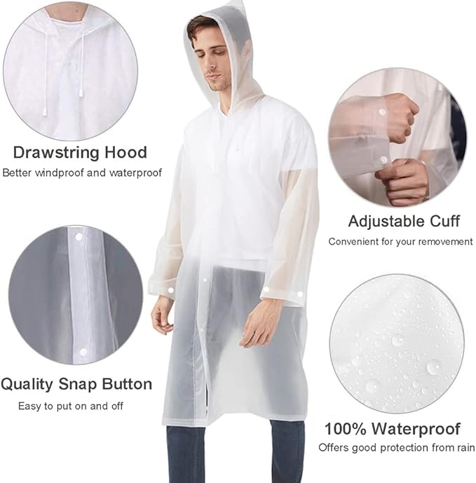 • 【HIGH QUALITY MATERIALS】Cosowe travel raincoats are made of new eco-friendly EVA material, which is non-toxic, no smell, durable, tear-proof, harmless, extremely waterproof and reusable, while breathable and comfortable to wear.