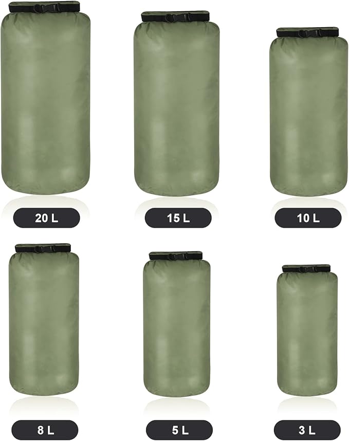 Shappy 6 Pcs Waterproof Dry Bag Set 6 Size Lightweight Sack and Long Adjustable Shoulder Strap 20/15/10/8/5/3l Outdoor Keep Gear Stuff Sack for Backpacking Boating Hiking Camping