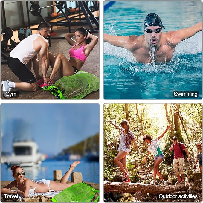 - FOLDABLE ZIPPER POCKECT & EASY TO CARRY: Extra zipper pockets of our mesh drawstring backpack make it easy for you to pack phones, keys. Besides,you can easily fold our mesh beach bag into the zipper front bag, which takes up hardly any space that can easily fit in a purse, pocket.You will always have a mesh swim bag with you whether you go to gym or beach trip.Our mesh drawstring bag is perfect for gym bag,swim bag,basketball bag,soccer bag,sports bag,beach gear bag.