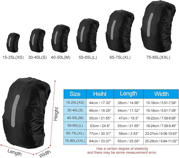- Instruction: This rain cover fits most backpacks from 15 to 25 liters, ensuring that your gear stays dry in any weather condition.